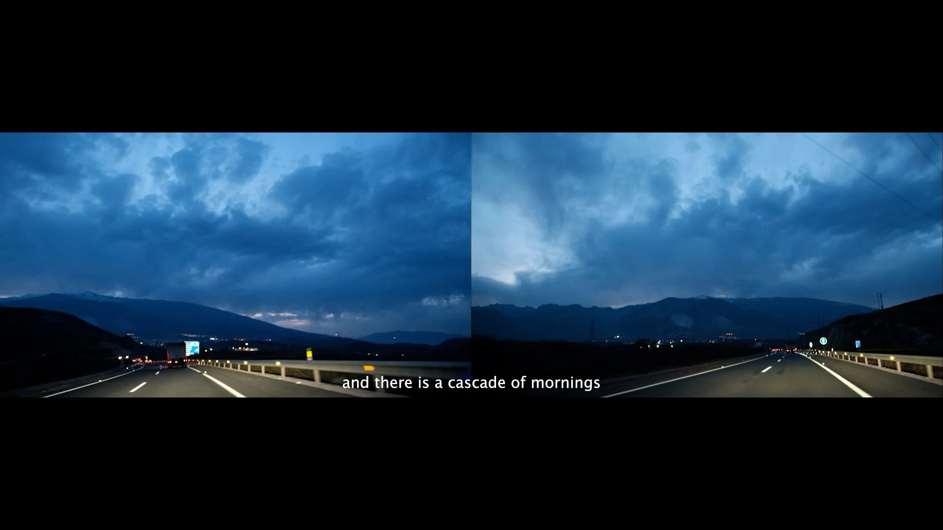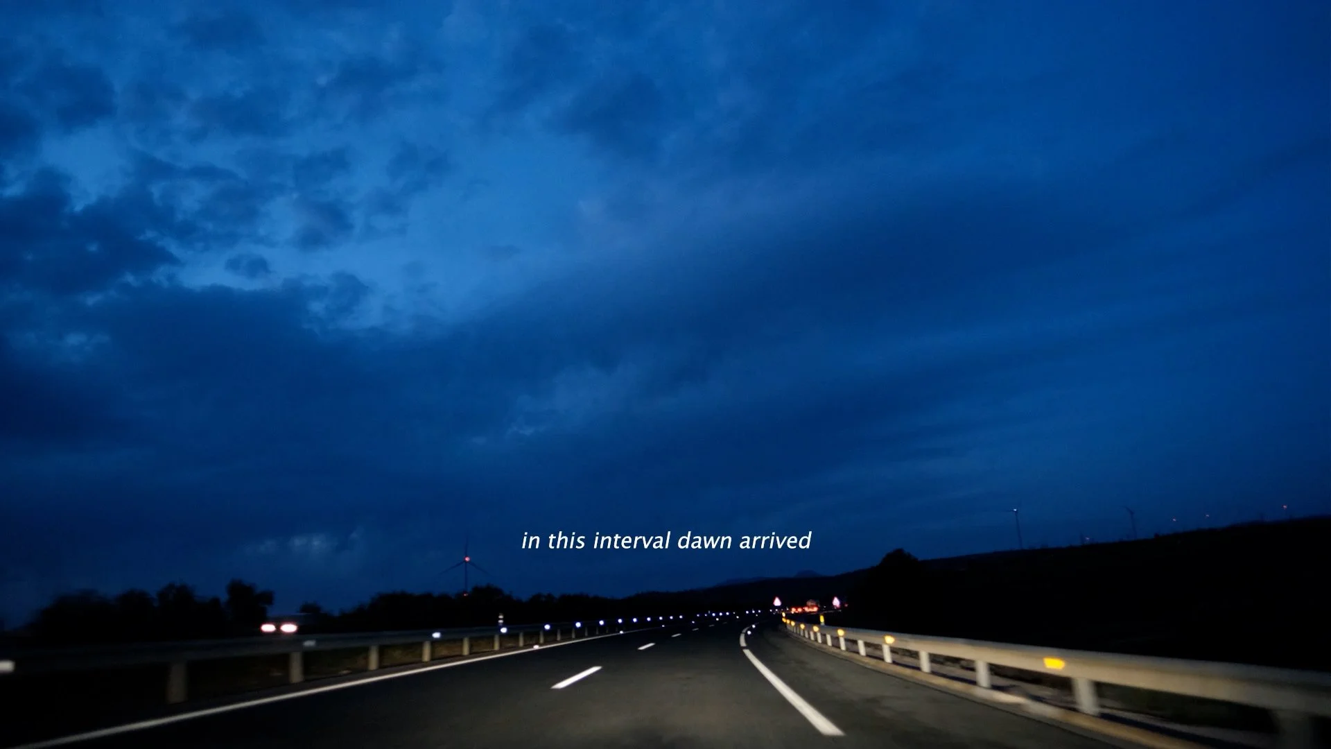 Yield reflects on cycles and on the legibility of the so-called natural world. Taking the form of a video poem, it portrays twilight — the time of day when the sky is still shaped by the sun’s rays, even though the sun itself is no longer visible.